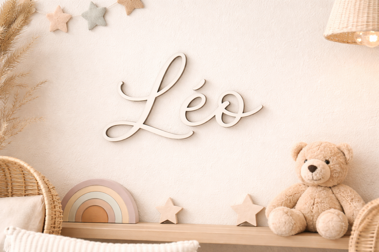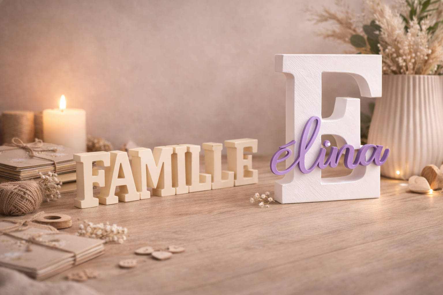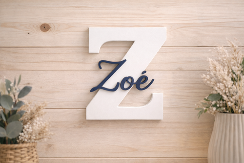 Lettres, prénoms et mots décoratifs fabriqués à la commande dans notre atelier.